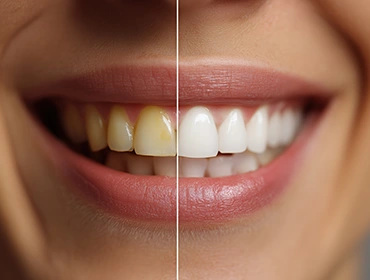 Whitening agents act on embedded pigments to revive natural whiteness. The protocol respects dentin sensitivity for a radiant result.