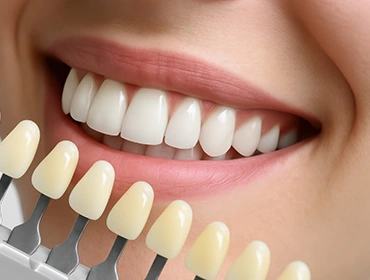 Thin ceramic shells cover the visible surface of the teeth. They provide a long-lasting solution to conceal color or structural imperfections.